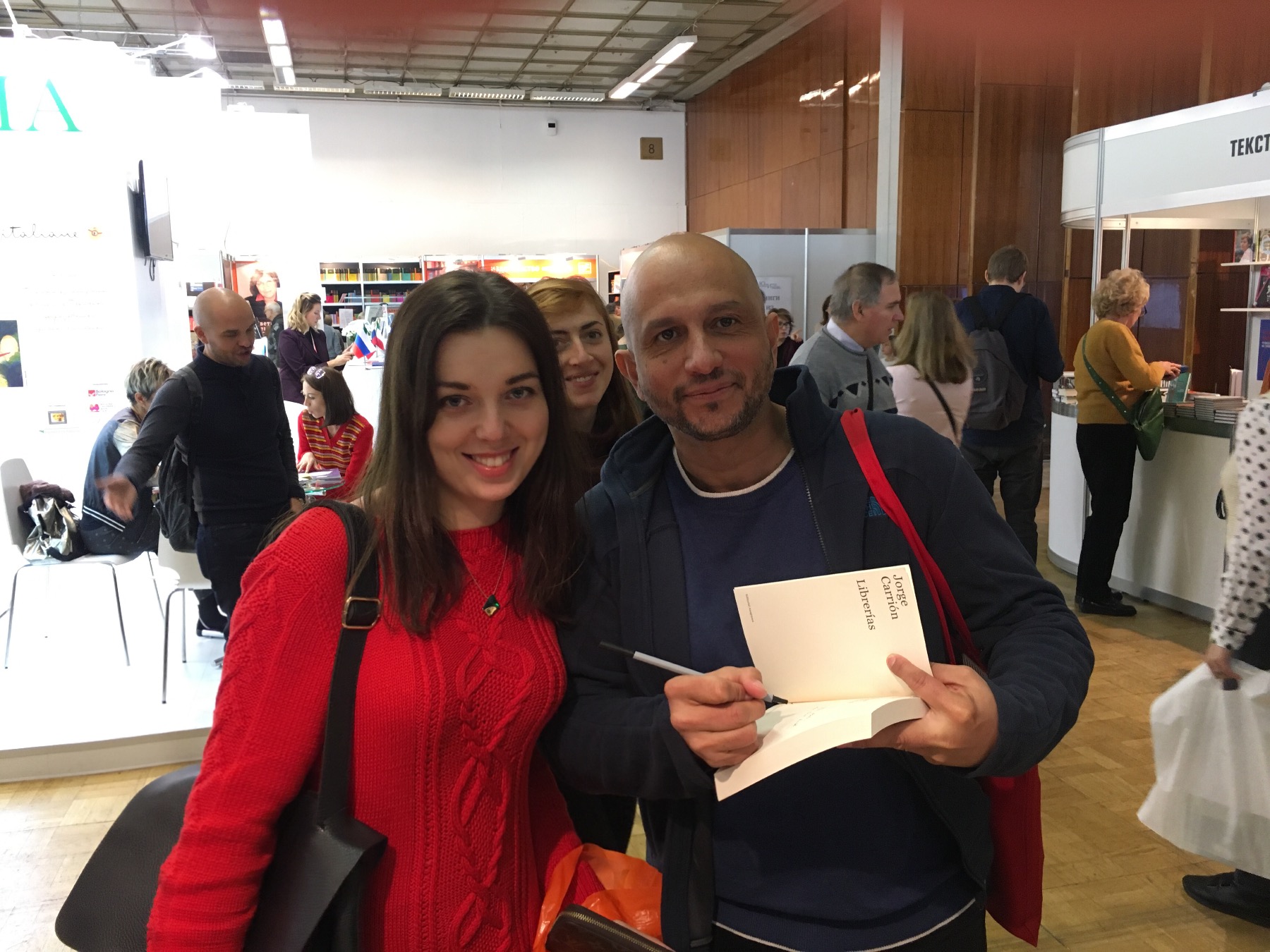 За этой я зашла на стенд издательства, как вдруг за моей спиной оказался автор. Магия и вуаля — и автограф и фото: