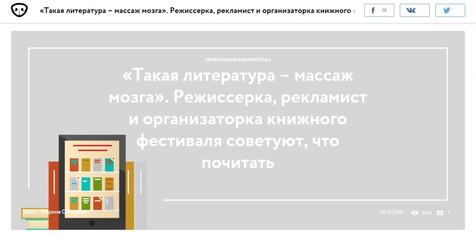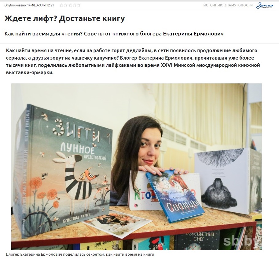 Haveaniceread в СМИ Интервью в CityDog Круглый стол в АиФ Публикация лекции в газете «Знамя Юности» Интервью на канале «Культура» Белорусского радио Сюжет на телеканале БелРос (с 14 минуты) Поделиться ссылкой: Поделиться в Х (Открывается в новом окне) X Поделиться на Facebook (Открывается в новом окне) Facebook Нравится Загрузка... Похожее Оставить комментарий Отменить ответ